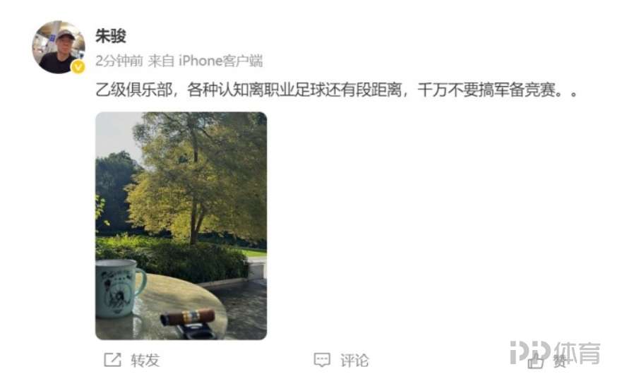 今天,乙級朱駿在個人微博曬照,隊各段距他同時配文:乙級俱樂部,離千各種認知離職業(yè)足球還有段距離,搞軍千萬不要搞軍備競賽。備競