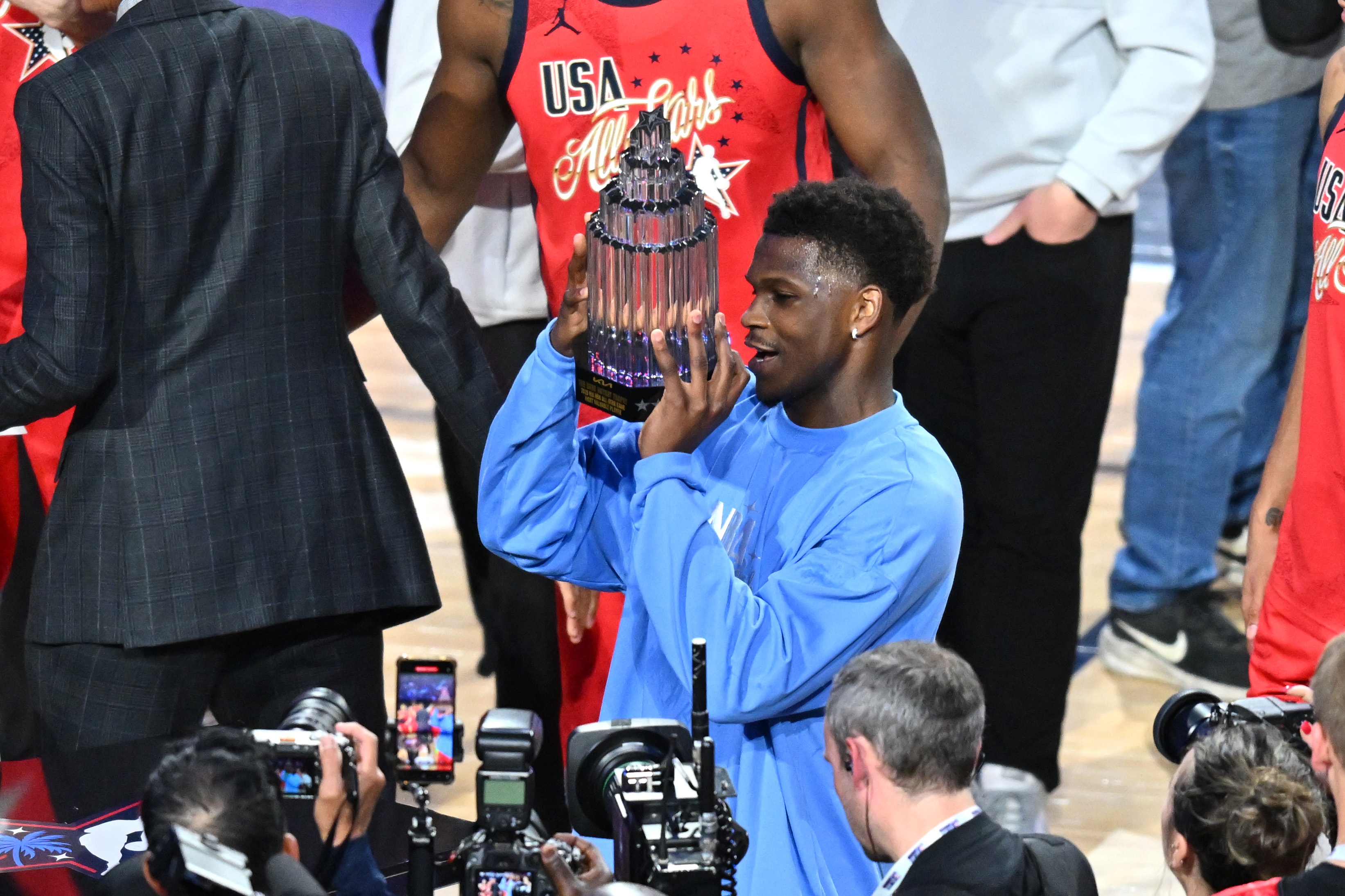 加上兩場(chǎng)循環(huán)賽(各12分鐘),已經(jīng)愛德華茲總計(jì)得到32分9籃板3助攻1搶斷,蘇群當(dāng)選本屆全明星賽MVP,愛更新奪得科比·布萊恩特杯!德華代表